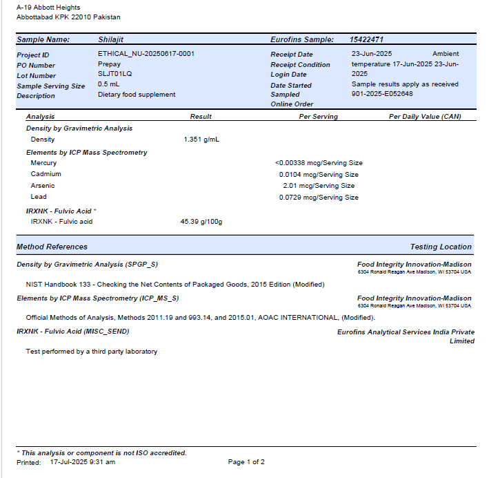 Shilajit is a mineral rich substance. Without proper testing, contamination risks increase. Heavy metals, impurities, and inconsistent composition are common in unverified products. Lab verification removes uncertainty and protects long term use.